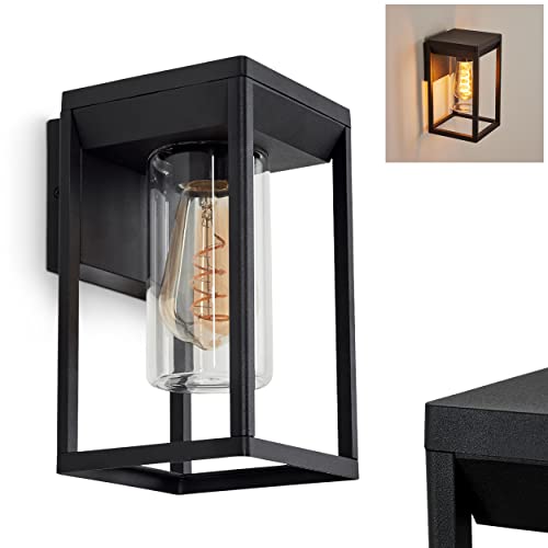 Utomhus vägglampa Palanga, utomhuslampa av metall/glas i svart/klar, vägglampa nedåt för terrass/gård/entré, 1 x E27, vägglampa med stor ljuseffekt, utan glödlampa