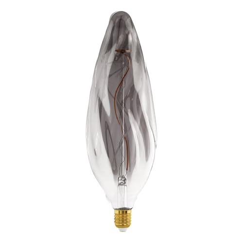 EGLO XXL E27 dimbar lampa, spiralformad LED-retro glödlampa i stor storlek, extra stor vintage dekorationslampa i grått och svart, 4 watt, 120 lumen, varmvit, 1800 K, L 28 cm