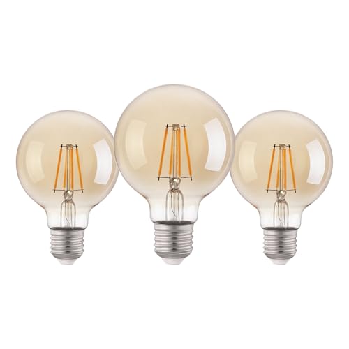 Eglo E27 LED-lampor, vintage bärnstensfärgad glödlampa, 4 watt vardera, stor globlampa, varmvitt ljus, 2 200 K, 400 lumen, retro G80 lampa, Ø 8 cm