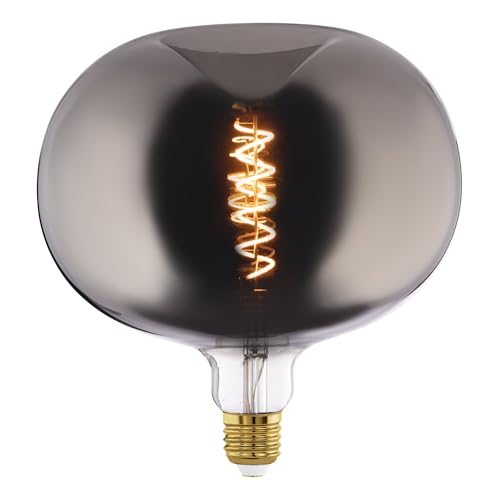 EGLO XXL Dimbar E27-lampa, spiral-LED, retro-glödlampa, stor storlek, extra stor dekorativ vintagelampa i grått och svart, 4 watt, 85 lumen, varmvitt ljus, 1 800 K, längd 29,5 cm