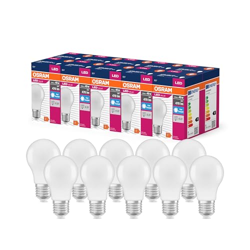 OSRAM LED-stjärnvärde Classic A40 LED-lampa för E27-uttag, päronform, FR, 470 lumen, dagsljusvitt (6500K), ersättning för konventionella 40W-glödlampor, inte dimbara, 10-pack