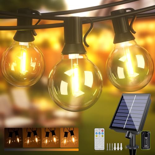 Genixgreen Solcells- och utomhusgirlanglampor, 10 m/33 fot LED utomhusljusslingor med 15 + 1 okrossbara dimbara glödlampor med fjärrkontroll, 3 timer, 8 lägen för trädgård, utomhus, trädgård, uteplats