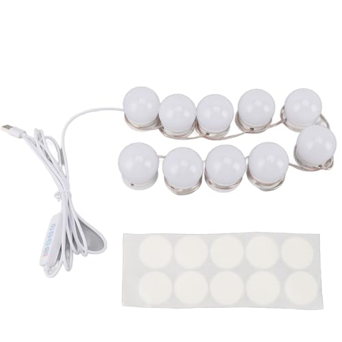 LED Sminklampor med 10 Dimbara Glödlampor, Sminklampor i Hollywoodstil, USB Justerbar Färg Vit och Ljusstyrka Spegellampor Stick på för Smink Omklädningsrum Badrum