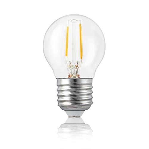 HELLUM 209105 LED-glödtrådslampa G45, E27, 2 W, motsvarar 25 watt, 250 lumen, klar, A++, varmvit 2700 K, 330° strålvinkel, 2 000 timmar, inomhus och utomhus