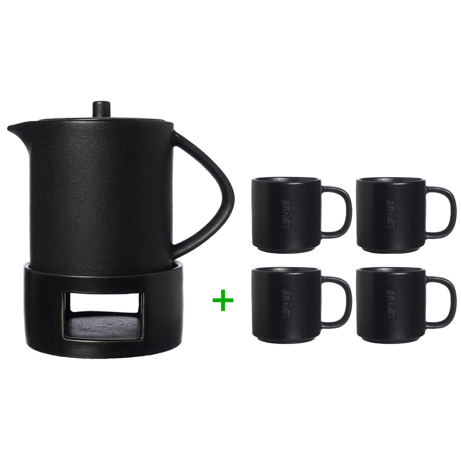 Glöggkanna Med 4 Glöggmuggar, Svart