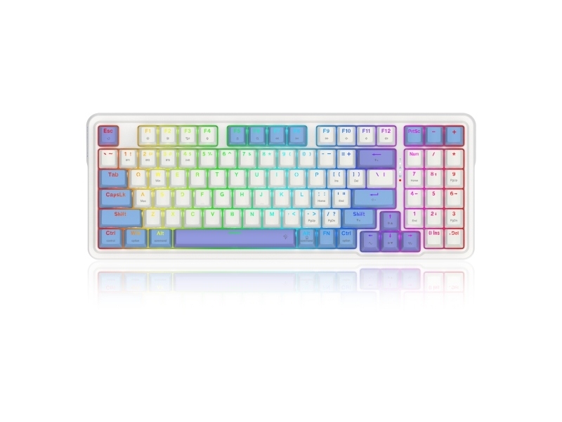 Redragon K664wbp-Rgb-Pro Gloria Pro, Kabel & Trådlös, Usb + Rf Wireless + Bluetooth, Mekaniska Tangentbrytare, Vit, Blå, Lila