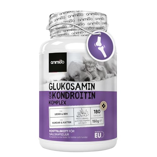 Glucosamine Chondroitin Complex - 180 kapslar för brosk, leder och ben - Ledkapslar för hundar och katter - Med gurkmeja, ingefära och C-vitamin - Alternativ till ledtabletter och pulver