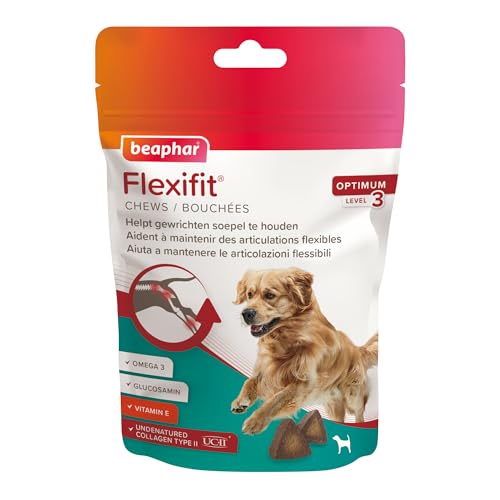 Beaphar Flexifit Chews - för hundar med ledvärk-artros - tillskott med kollagen typ II, glukosamin, Omega 3 och E-vitamin som hjälper till att lindra smärta och stärka lederna - 175 g