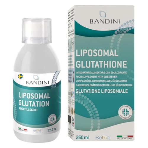 Bandini® Liposomal Glutathione 250ml | 250 mg L-Glutathione Setria reducerad och bioaktiv genom fermentering per dos | Antioxidant, anti-åldrande, motverkar fria radikaler | GMO-fri, vegansk