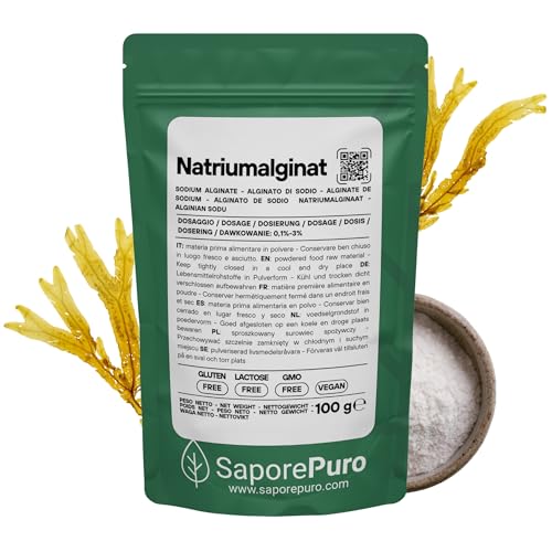 SaporePuro Natriumalginatpulver 100 g – Förtjocknings-, Gelé- och Stabiliseringsmedel – Perfekt för Molekylär Matlagning – Glutenfritt