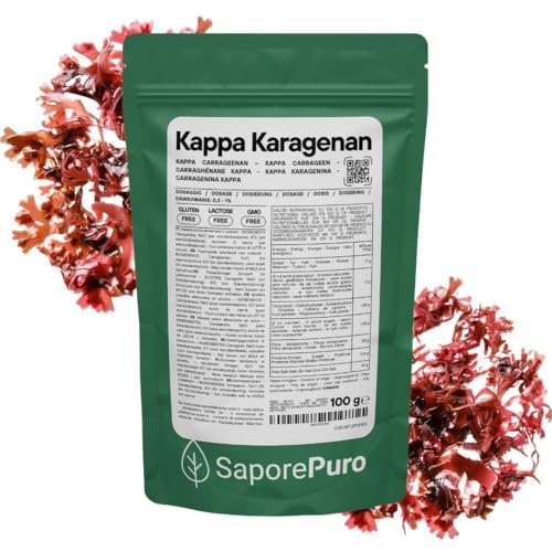 SaporePuro Kappa-Karagénpulver 100 g – Glutenfritt – Gelé- och Stabiliseringsmedel för Maträtter, Köttprodukter, Geléer och Desserter