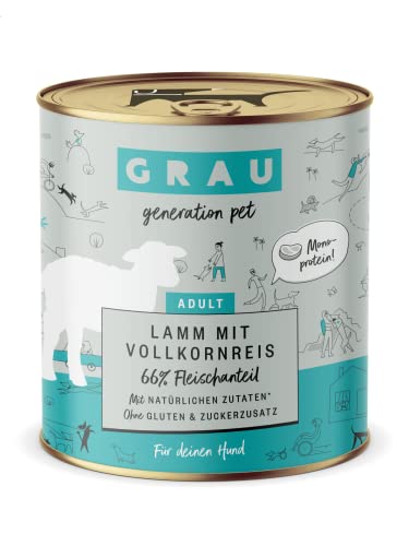 GRAU Våtfoder med lamm och fullkornsris för vuxna hundar, monoprotein, glutenfritt, originalprodukt, 6-pack (6 x 400 g