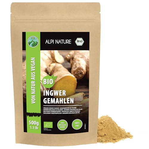 Organiskt ingefära pulver, malet ingefära från kontrollerad organisk odling, ingefära pulver, 100% naturligt, utan tillsatser, glutenfritt, laktosfritt, laboratorietestat, vegan (500 GR)