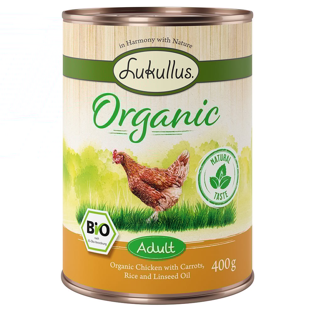 Lukullus Organic Adult ekologisk kyckling & ekologisk morot (glutenfritt) - 6 x 400 g