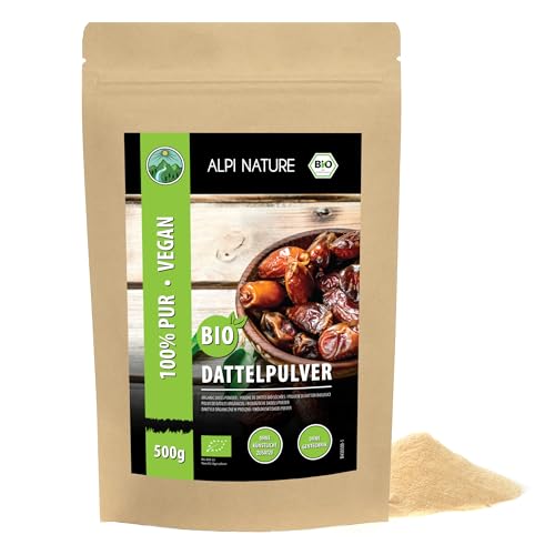 Ekologiskt daddelsocker, ekologiskt daddelpulver från kontrollerad ekologisk odling, glutenfritt, laktosfritt, malda dadlar, laboratorietestat, vegan (500 GR)