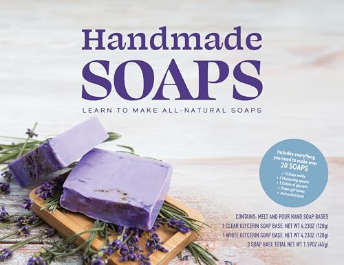 Handmade Soaps Kit: Learn to Make All-Natural Soaps - Includes everything you need to make over 20 soaps: 12 soap molds, 2 measuring spoons, 5 colors of glycerin, paper gift boxes, instruction book