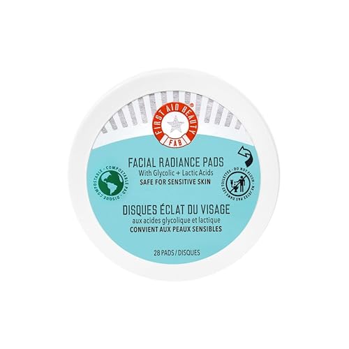 First Aid Beauty ansiktsradiance Pads – Dagliga Peeling Pads med AHA (glykolsyra mjölksyra) som hjälper till att strama åt och lysa upp huden – komposterbara för daglig användning – 28