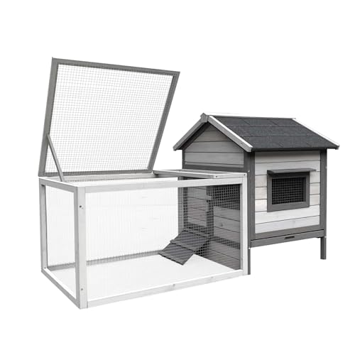 Harebur ljusgrå 146x75x83cm av trä, gnagarhus & utlopp, utdragbar låda för rengöring
