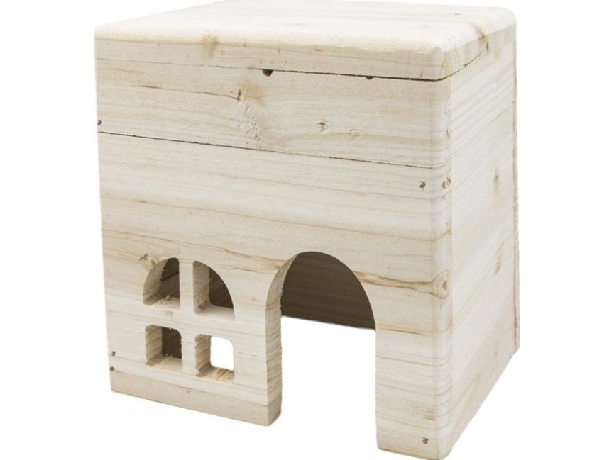 Flamingo Hansy brunt trä gnagarhus - 20 x 20 x 20 cm - House in High är avtagbart för enkel rengöring - utrustad med en observationsplatta på taket