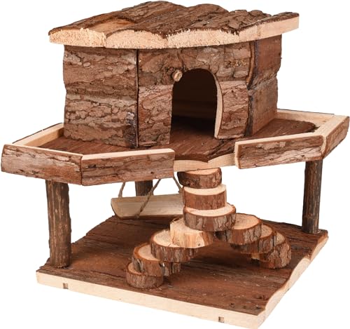 Relaxdays Hamsterhus av trä, med golv, gnagarhus guldhamster, mus, tillbehör hamsterbur, HBT 17 x 25 x 15 cm, natur