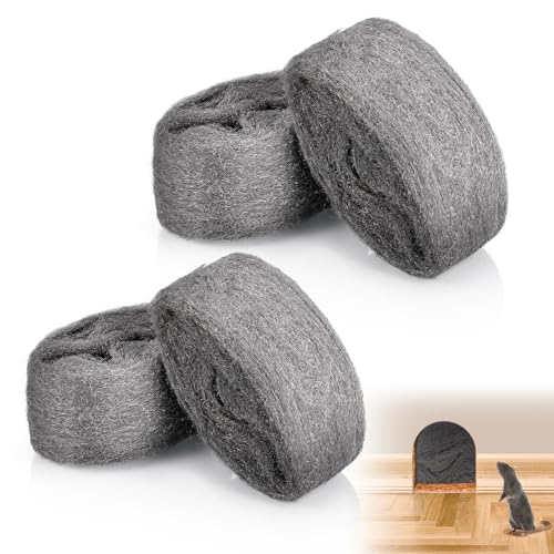 JIZZU 4 rullar möss 000 stålull, 14 m effektiv stålull mot möss, gnagarskydd, byggskum för hål och vägg, sprickor i hus, för hus, garage och trädgård