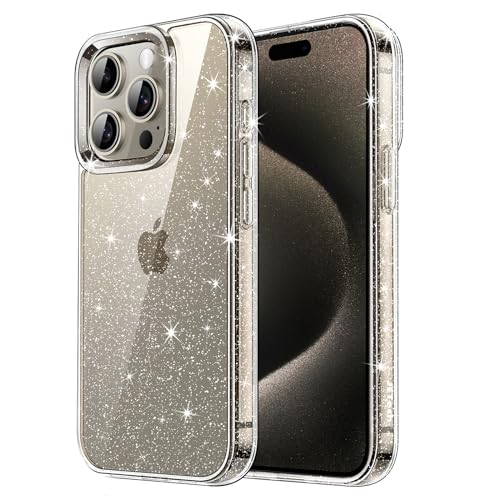 JETech Glitter Skal för iPhone 15 Pro Max 6,7 Tum, Bling Gnistra Stötskyddad Telefon Bumper Case, Söt Glittrande Fodral för Kvinnor och Flickor (Klar)