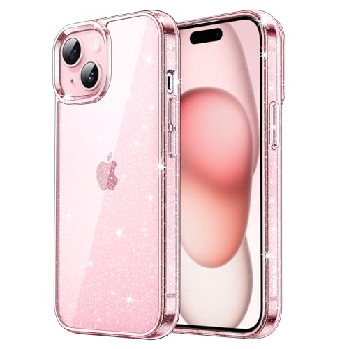 JETech Glitter Skal för iPhone 15 6,1 Tum, Bling Gnistra Stötskyddad Telefon Bumper Case, Söt Glittrande Fodral för Kvinnor och Flickor (Rosa)