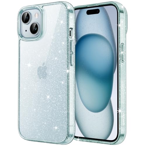 JETech Glitter Skal för iPhone 15 6,1 Tum, Bling Gnistra Stötskyddad Telefon Bumper Case, Söt Glittrande Fodral för Kvinnor och Flickor (Klar)