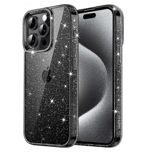 JETech Glitter Skal för iPhone 15 Pro 6,1 Tum, Bling Gnistra Stötskyddad Telefon Bumper Case, Söt Glittrande Fodral för Kvinnor och Flickor (Svart)