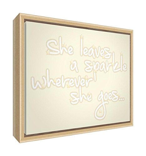 Feel good art eko-tryckt och inramad barnkammarduk med solid naturlig träram (44 x 34 x 3 cm, medium, grädde, hon lämnar en gnistra var hon än går)