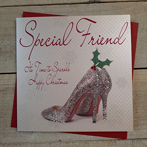 Vita bomullskort speciell vän är dags att gnistra glad handgjord julkort (skor)