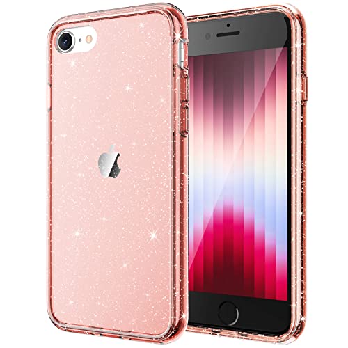 JETech Glitter Skal för iPhone SE 2022/2020 (3/2 Generationen), iPhone 8/7, 4,7 Tum, Bling Gnistra Stötskyddad Telefon Bumper Case, Söt Glittrande Fodral för Kvinnor och Flickor (Rosa Guld)