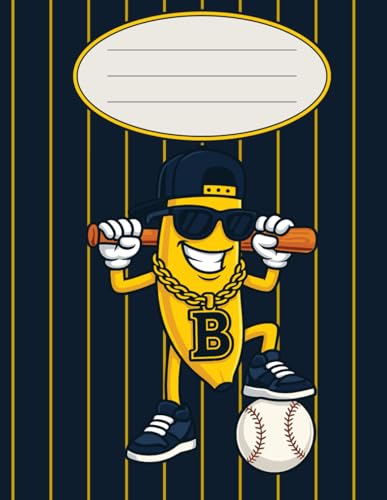 Go Bananas! Funny Baseball Notebook: Wide Ruled Journal with Cool Banana Cover and Pinstripes. Great for School Supplies and Sports Fans.