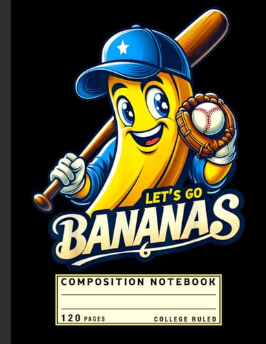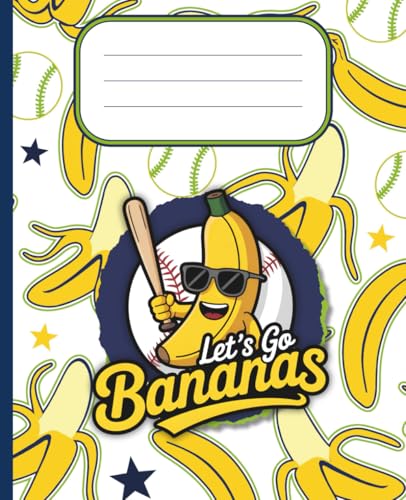 Composition Notebook College Ruled: Cute Banana Baseball Illustration with “Let’s Go Bananas” Quote, Fruit Lover Journal for Game Day Fans and Kids