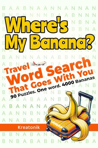 Where’s My Banana? Travel Word Search That Goes With You: 90 Puzzles. One Word. 4000 Bananas. A Fun On-the-Go Activity Book for Kids, Teens & Adults.