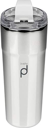 DrinkPod Återanvändbara kaffekoppar, 500 ml/0,5 L On-The-Go rostfritt stål med dubbla väggar | håller drycker varma i 6 timmar | metallisk silverfinish