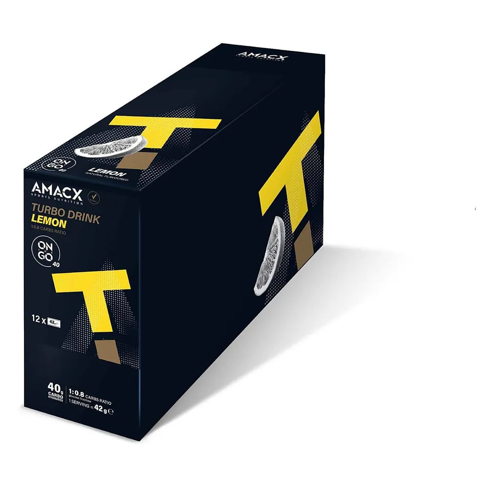 Amacx Turbo On The Go Energy Drink Monodose Box Lemon 40g 12 Units Svart