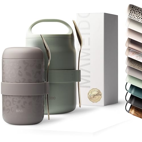 MAMEIDO termokopp för mat 500 ml, müsli mugg to go rostfritt stål, termokopp för mat läckagesäker, perfekt för yoghurt, gröt, barnmat, soppor & glass (Desert Sage)