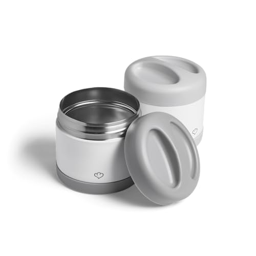 MAMEIDO termokopp för mat 500 ml, müsli mugg to go rostfritt stål, termokopp för mat läckagesäker, perfekt för yoghurt, gröt, barnmat, soppor & glass (Taupe Grey)