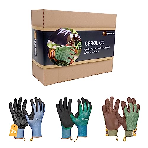 Gebol GO Trädgårdshandskset herr | storlek L (storlek 9) | Professionell utrustning för trädgårdsarbete | läder- och stickhandske mix för trädgårdsmästare | för män | 4 par