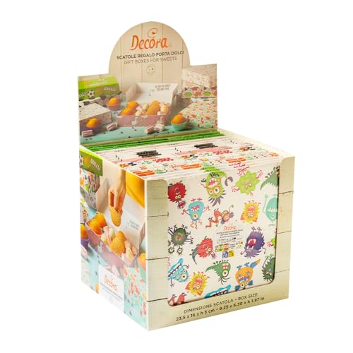 Decora 0346010 Bänkställ med förvaringslådor av matlåda med 8 olika mönster, Party Goal Dino Monster Enhörning, tillverkad i Italien, originaldesign, 24-delad låda