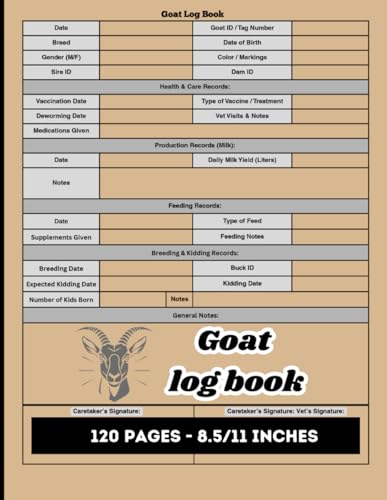 Goat Record Keeping Log Book: Complete Goat Management Journal with Medical, Breeding, Milk Production & Expense Tracking: Goat Farm Record Organizer ... Milk Yield & Monthly Expenses | 8.5 x 11 Inch