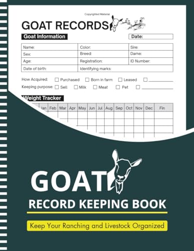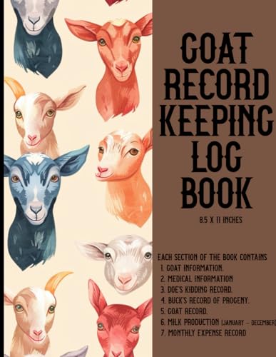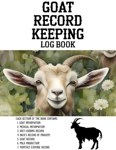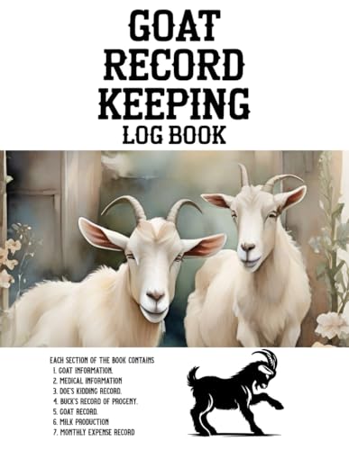 GOAT RECORD KEEPING LOG BOOK: Includes Sections for Goat Info, Medical Logs, Kidding Records, Progeny Tracking, Milk Output & Monthly Costs . all in one place