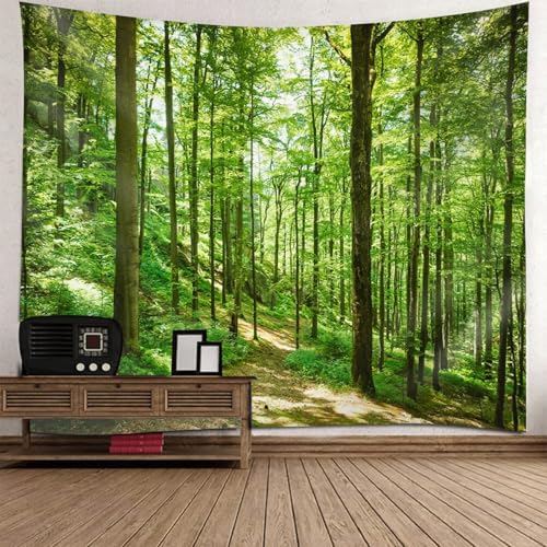 Mesnt Sovrumsgobeläng natur, naturgrön skog gobeläng vägg hängande natur landskap väggbonader för hus vardagsrum dekoration, grön, B: 138 x H: 256 cm