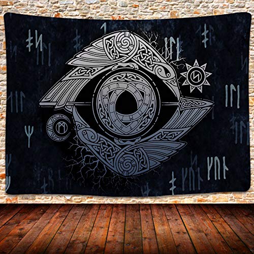 UHOMETAP Viking konst gobeläng Odin's Ravens Viking kråka gobeläng nordisk mytologi konst vägg hängande dekor för sovsal vardagsrum hem 203 x 152 cm GTLSUH534