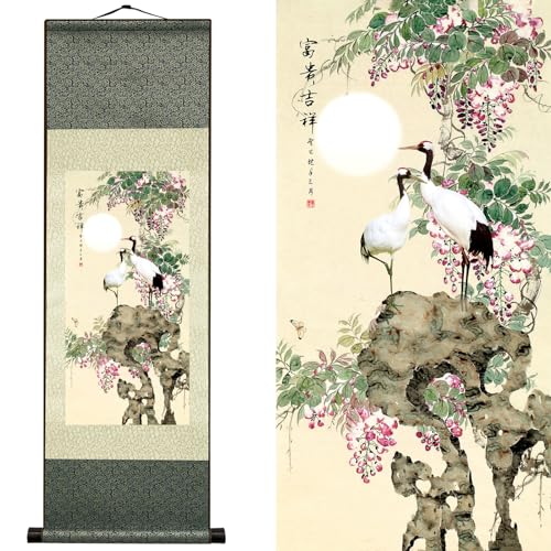 Newscz Sovrum bilder för väggkonst dekor väggmålning sidentrulle konstmålningar Sarus Crane affischer vägg gobeläng sovrum kanvas asiatisk husdekoration för vardagsrum heminredning 91 x 30 cm