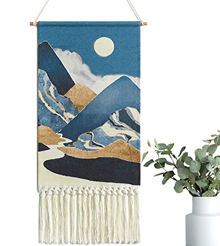 Weldomcor makramé gobeläng vägg hängande med tofsar boho vävd väggkonst dekor chic hem bohemiska måne gobelänger sol berg moln aztek lägenhet sovsal bakgrund dekoration