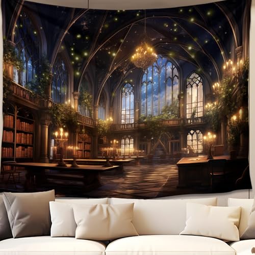 QGHOT Biblioteksgobeläng saga magisk skola bokhylla gobeläng vägg hängande medeltida rum för studier magisk bok gobeläng för tonåringar sovrum vardagsrum sovsal väggkonst heminredning (230 x 180 cm)