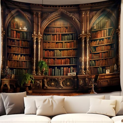 QGHOT medeltida gobeläng vintage bokhylla gobeläng vägg hängande bibliotek gobelänger, gamla böcker för dekor studierum viktoriansk sovrum vardagsrum stor bokhylla zoom video bakgrund 228 x 178 cm