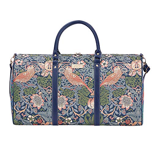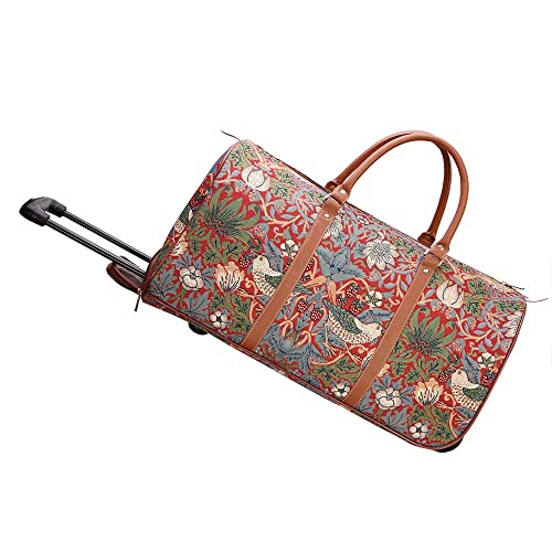 Signare Gobeläng resväska övernattningsväskor helgväska med hjul för kvinnor med William Morris Design, Jordgubbtjuv röd, W 58cm x H 31cm D 30cm
